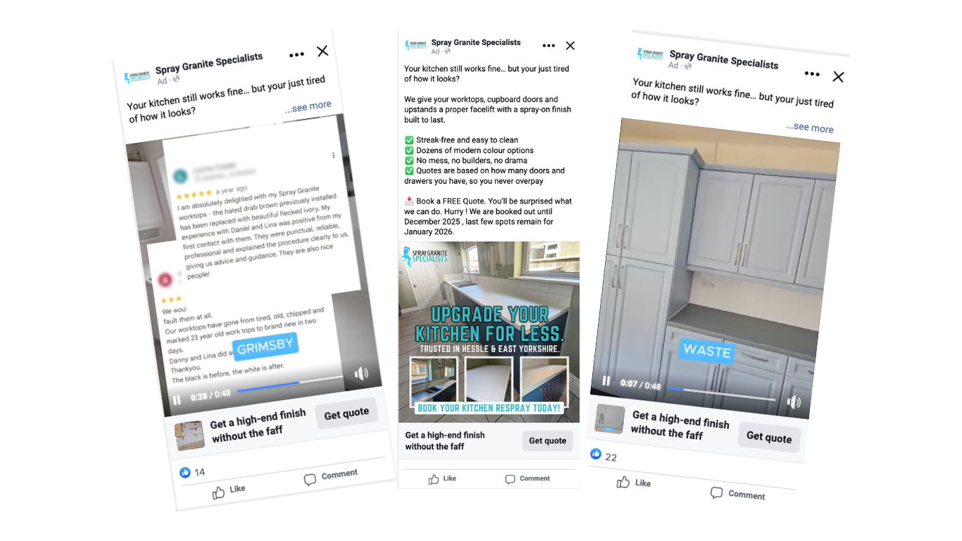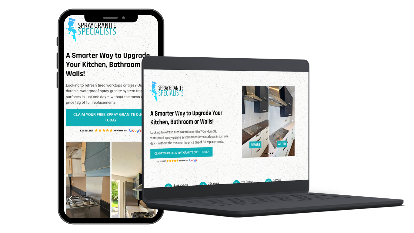Spray Granite Specialists are a specialist surface renovation company delivering high-quality spray granite and worktop refinishing solutions for residential / domestic clients. Their workmanship and finish speak for themselves, transforming tired kitchens and surfaces without the cost or disruption of full replacements. However, while the service was strong, creating a consistent, predictable flow of the right type of enquiries to keep the diary full was a growing challenge…